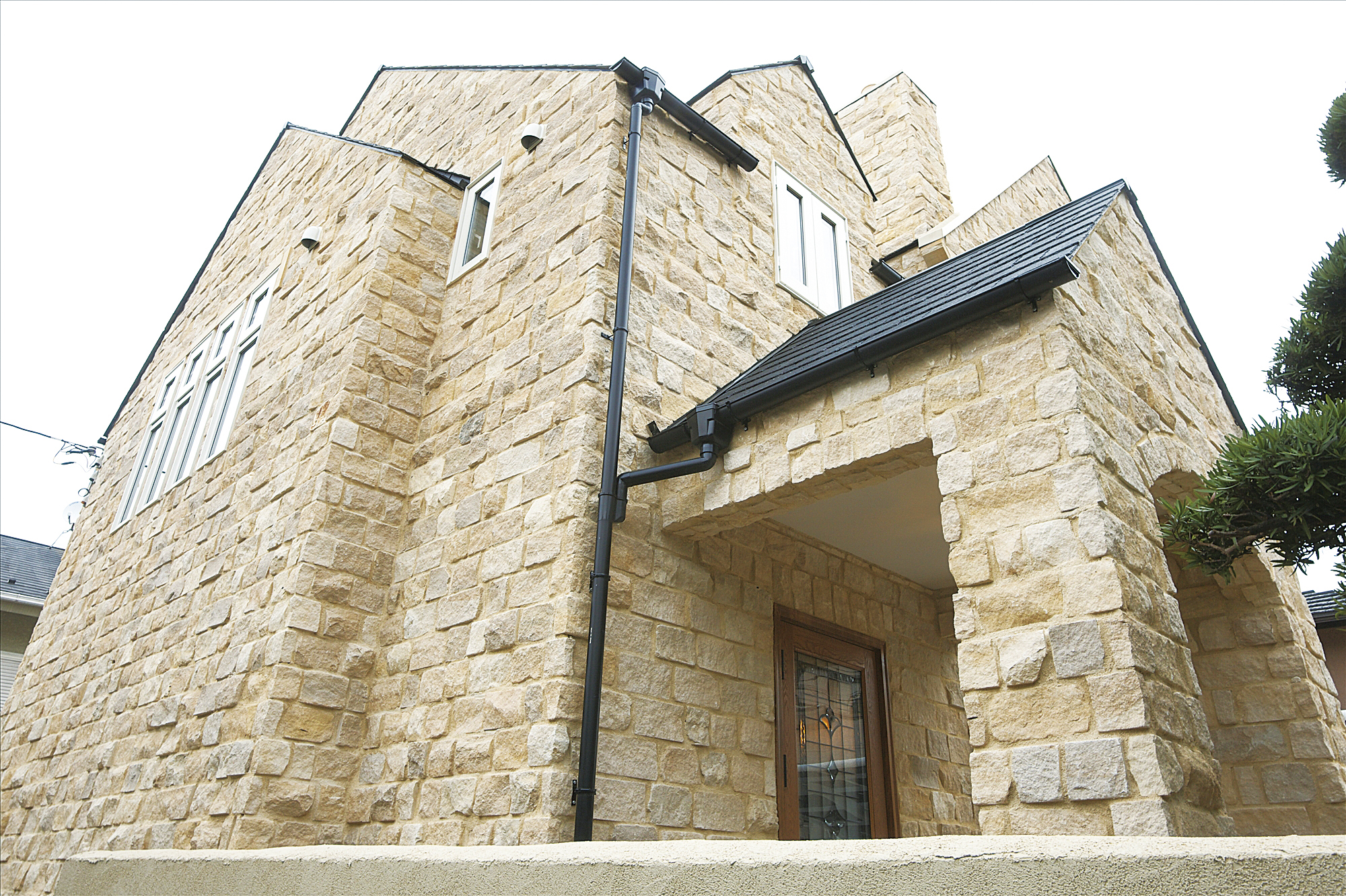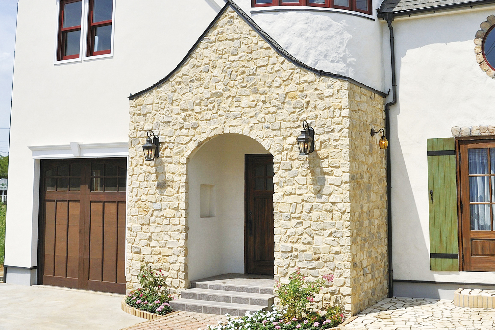 イギリス(英国)コッツウォルズ地方の天然石を直接仕入れ 独自の技術で外壁用、外構用のレンガとして 加工(湿式/乾式対応)しております。