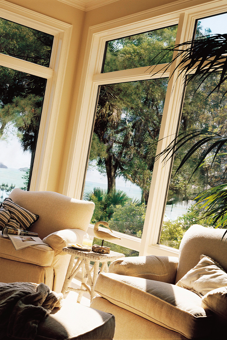 アンダーセンの木製サッシは複層ガラスを標準装備、木部はPVC樹脂で被覆されています。厳しい気候条件でも高気密・高断熱に優れた性能を発揮します。すべり出し窓・出窓・上げ下げ窓(ダブルハング)・突き出し窓・パティオドアなどデザインも豊富で、日本でも輸入住宅や商業施設などに40年以上にわたり愛され続けている代表的な輸入サッシです。